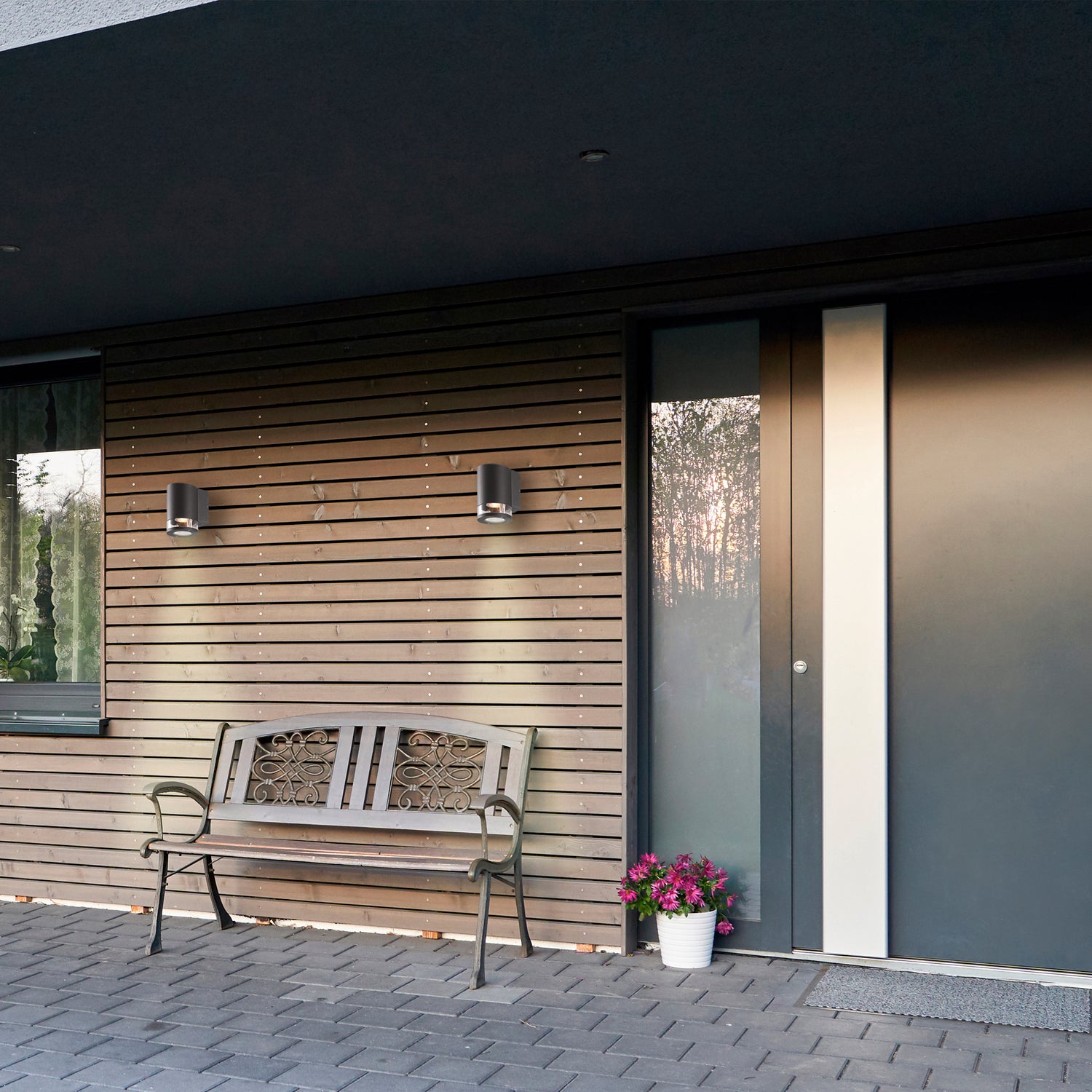 2. Tenk symmetri og helhet for å fremheve både fasade og utearealer. Løsningene er utallige når du skal belyse utendørs, men det er nøkkelen. Skal du ha flere lamper på fasaden bør de henge i lik høyde og med lik avstand. Ta gjerne utgangspunkt i senter av fasaden.