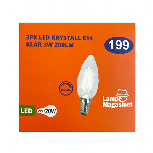 3pk LED E14 krystall klar 3W dimbar