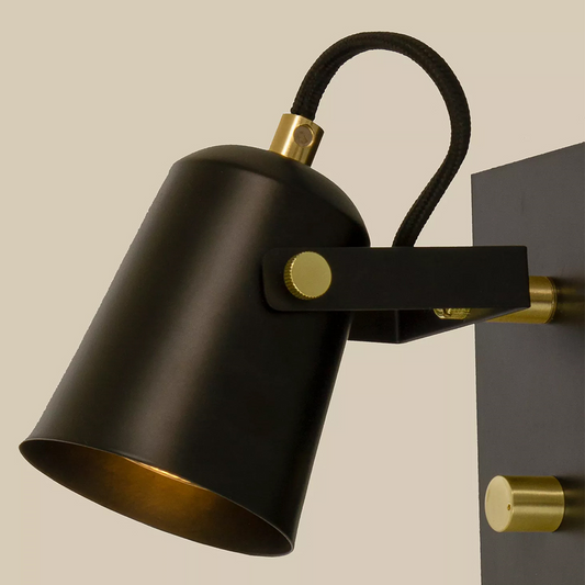 Oz K1 vegglampe m/USB sort/gull