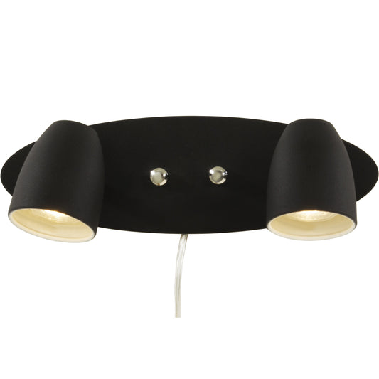 Sandnes 2-lys vegglampe sort m/dim