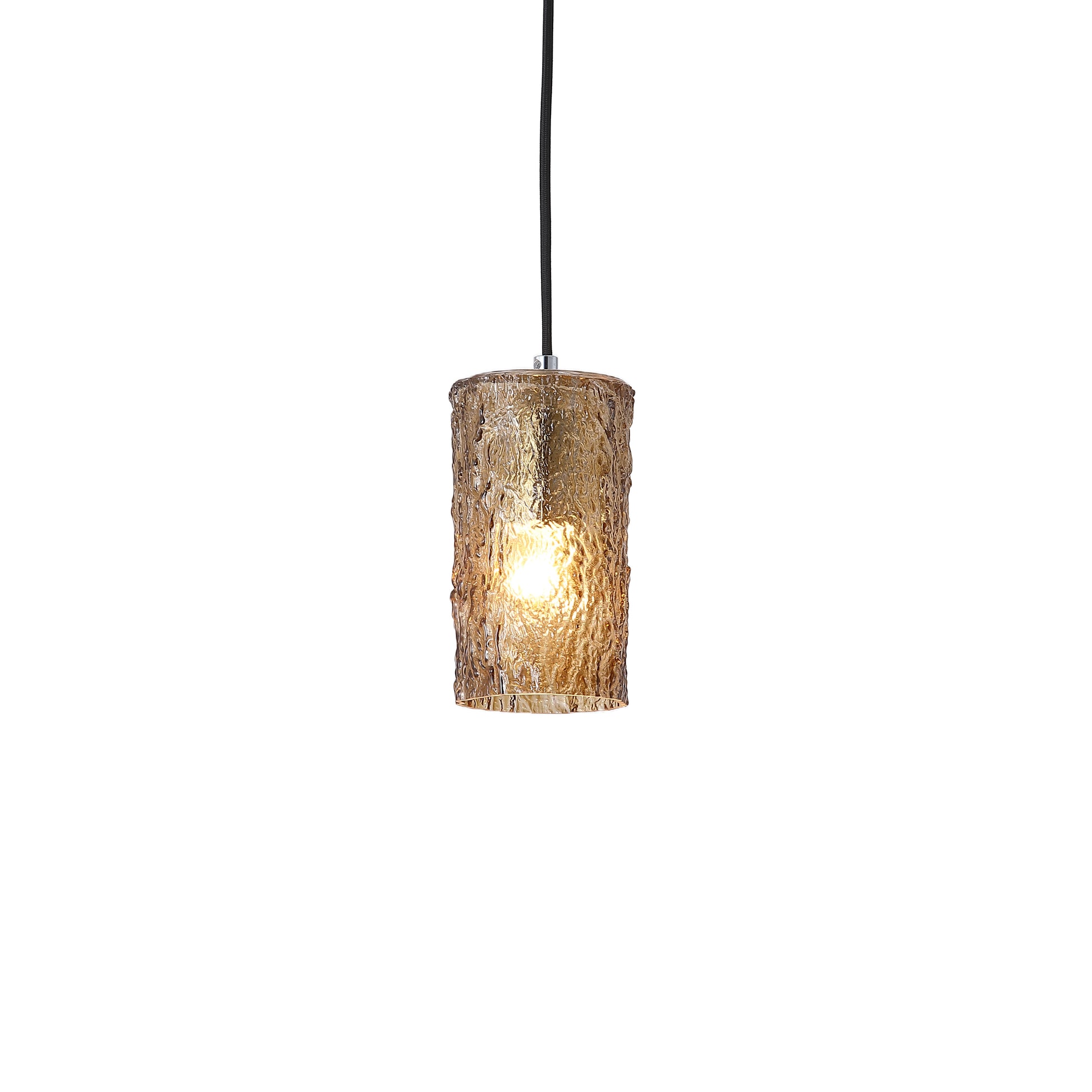 En enkel taklampe i amberfarget glass som fungerer utmerket som en pendel i vinduet ditt eller et sted hvor du trenger en enkel lampe som gir ekstra lys. Lampen har justerbar ledning med maks lengde på 400cm. Monter gjerne dimmer for å kunne regulere lysstyrken. 1xE27 lyskilde kjøpes separat.