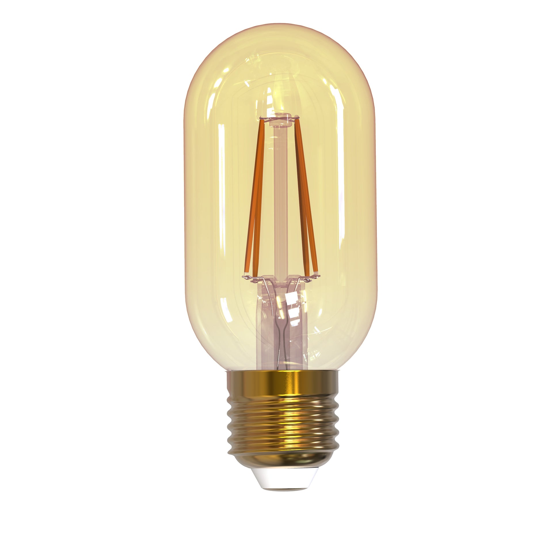 Rørformet pære med amberfarget glass. Ekstra varmt og koselig lys (2000K). E27 sokkel.