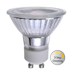 Dimbar GU10 pære i LED. Varmhvit fargetemperatur på 2200K.