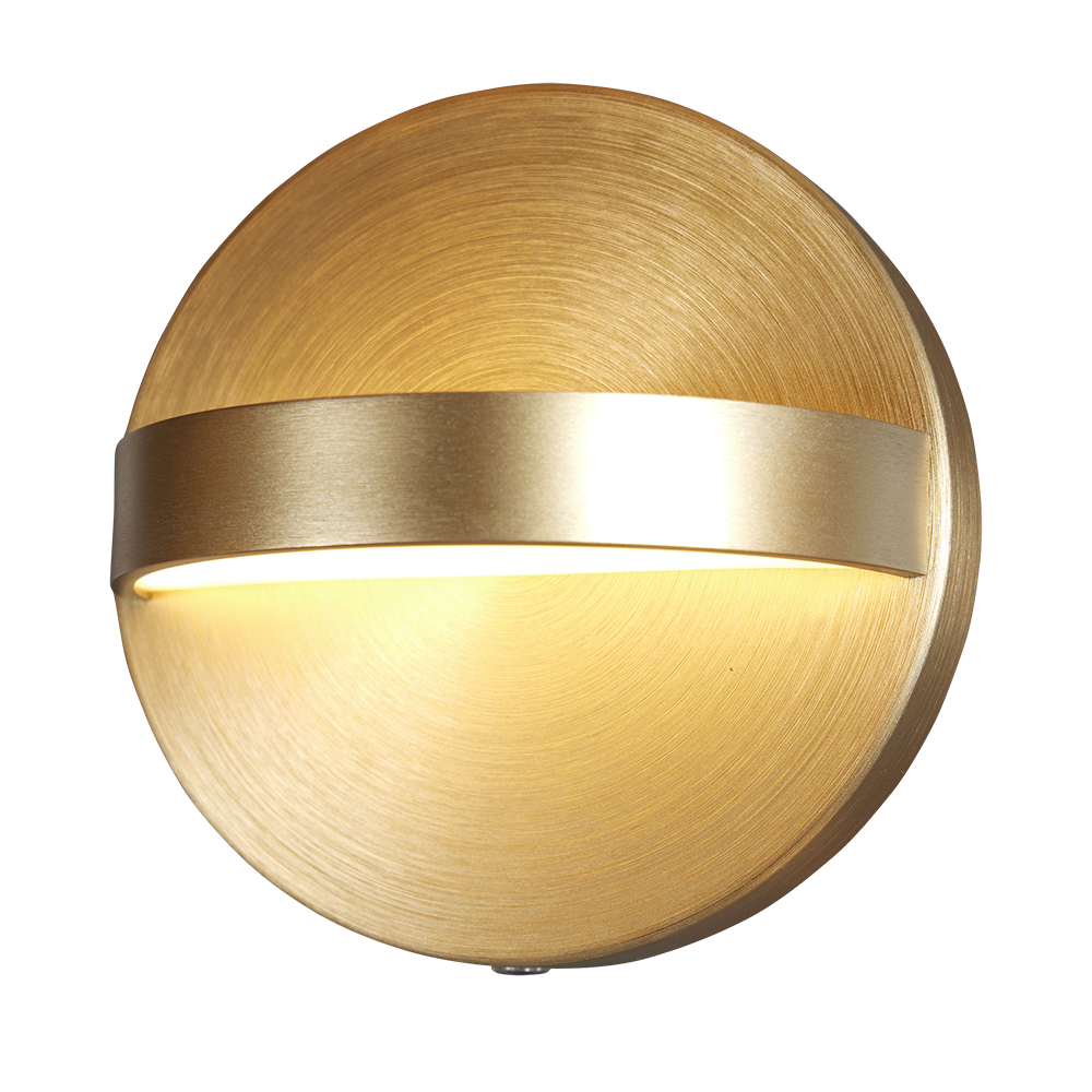 En dekorativ vegglampe i messing, som fungerer godt som ekstra lys i for eksempel gangen, men også som en pyntegjenstand. Lampen er sirkelformet med interegret LED, og sender mesteparten av lyset nedover. 3000K som gjør at lampen gir et rent og varmhvitt lys.