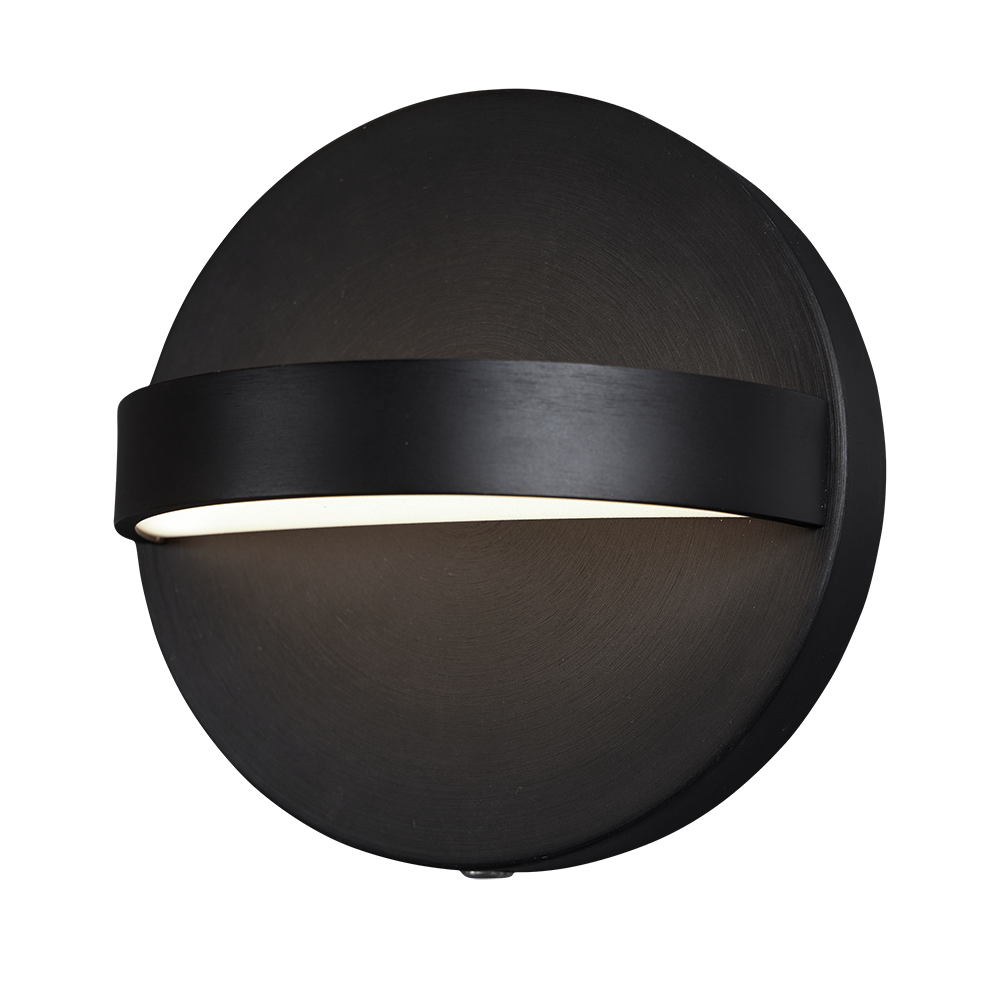En dekorativ, sort vegglampe, som fungerer godt som ekstra lys i for eksempel gangen, men også som en pyntegjenstand. Lampen er sirkelformet med interegret LED, og sender mesteparten av lyset nedover. 3000K som gjør at lampen gir et rent og varmhvitt lys.