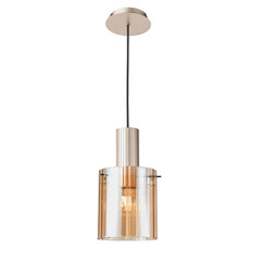 En dekorativ taklampe med lampeskjerm i amberfarget glass. Takplaten og sokkelen er i gullfarget metall. Lampen gir et elegant preg, og pynter opp ethvert rom. Diameter på kuppelen er 18cm og lampen kan nå maks høyde på 150cm. 1xE27 lyskilde må kjøpes separat.