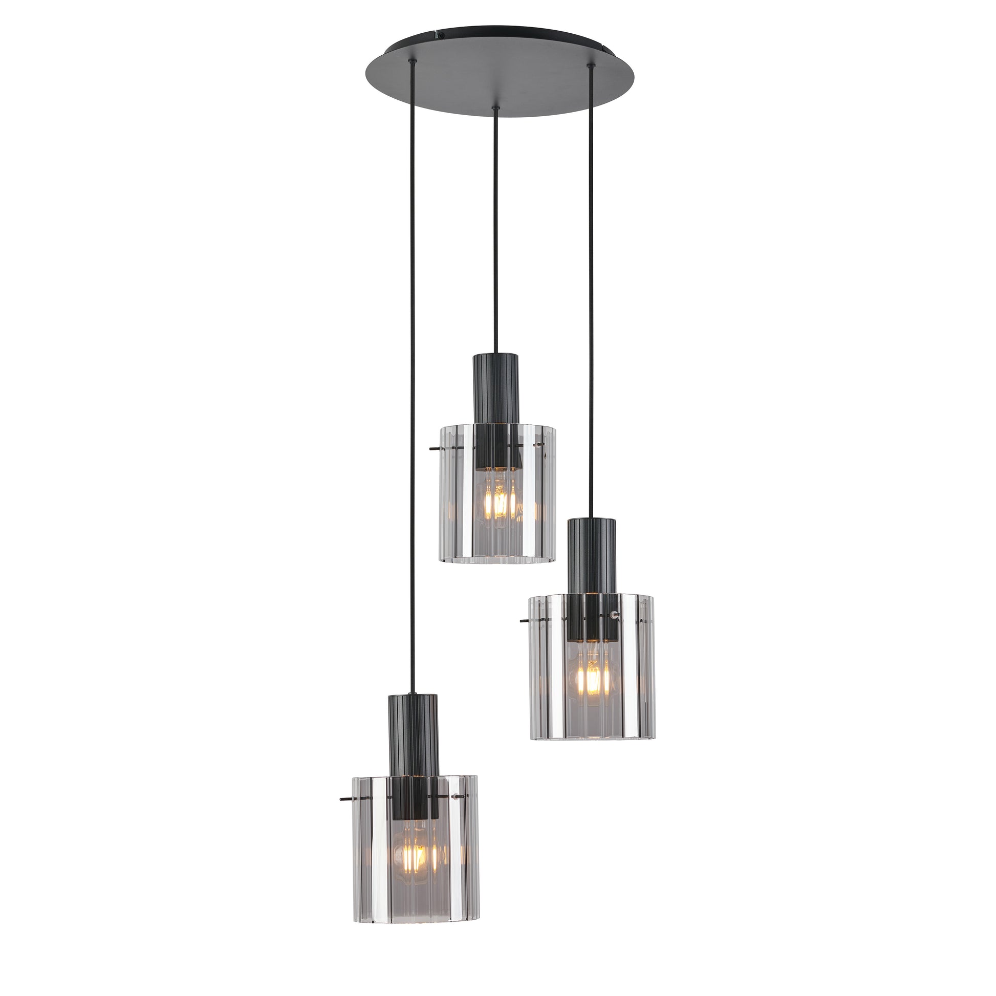 • Kvarts 3-lys takpendel E27 sort/sotet