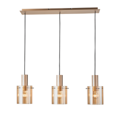 Kvarts taklampe skinne har et stilig design med et moderne preg. De tre hengende lampeskjermene har sotet glass, og takplaten og soklene er i sort metall. Lengden er 100cm og lampen kan nå maks høyde på 150cm. Monteres med brakett. 3xE27 lyskilder kjøpes separat.