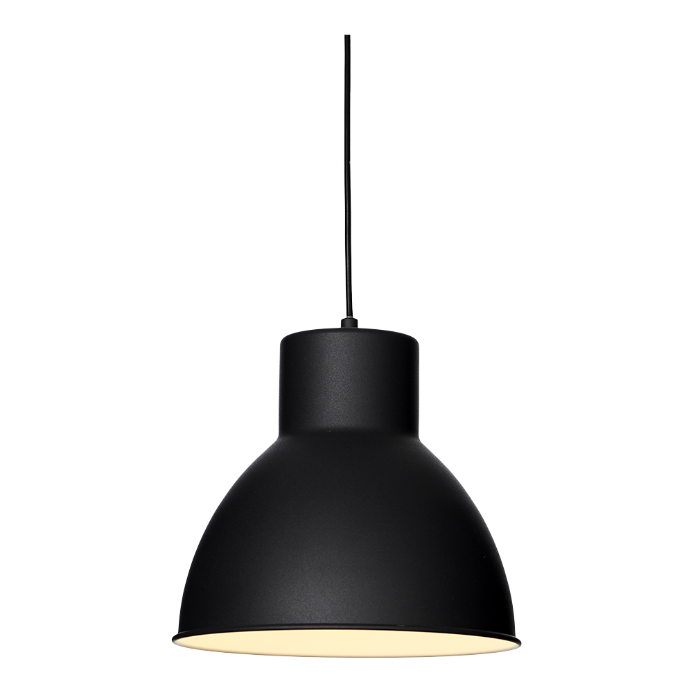 Ali takpendel har et lett retro design, og er laget i mattlakkert sort metall. Skjermens innside er hvit for å oppnå optimal lysrefleksjon. Pendelen har diameter 27cm og passer perfekt over spisebordet eller på soverommet. Velg en pære (E27) med ønsket styrke og fargetemperatur.
