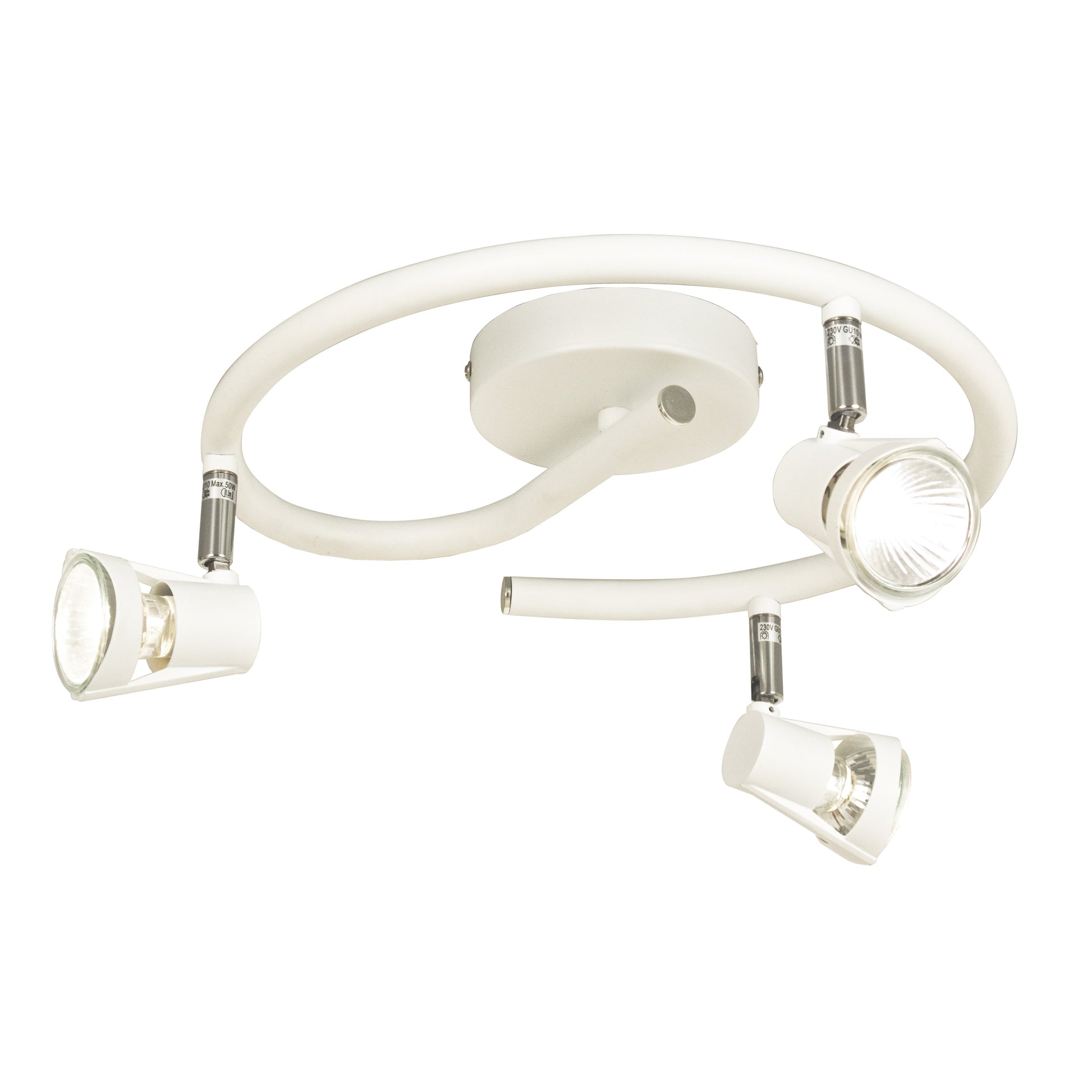 En dekorativ taklampe i hvit metall. Passer like godt på kjøkkenet som i gangen eller soverommet der det er behov for sterkt og godt lys. Hvert spotthode er justerbart. 3xGU10 lyskilder kjøpes separat.