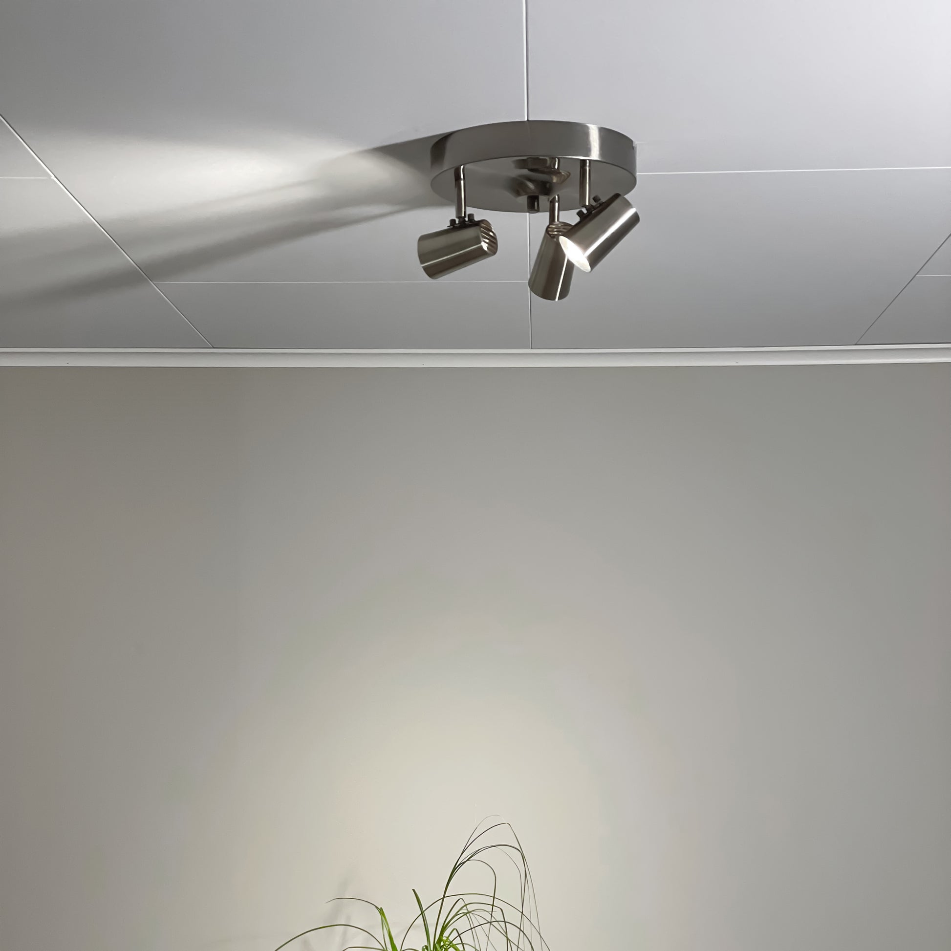 Pilot taklampe i stålfarget metall. Passer like godt på kjøkkenet som i gangen eller soverommet der det er behov for sterkt og godt lys. Hvert spotthode er justerbart.
