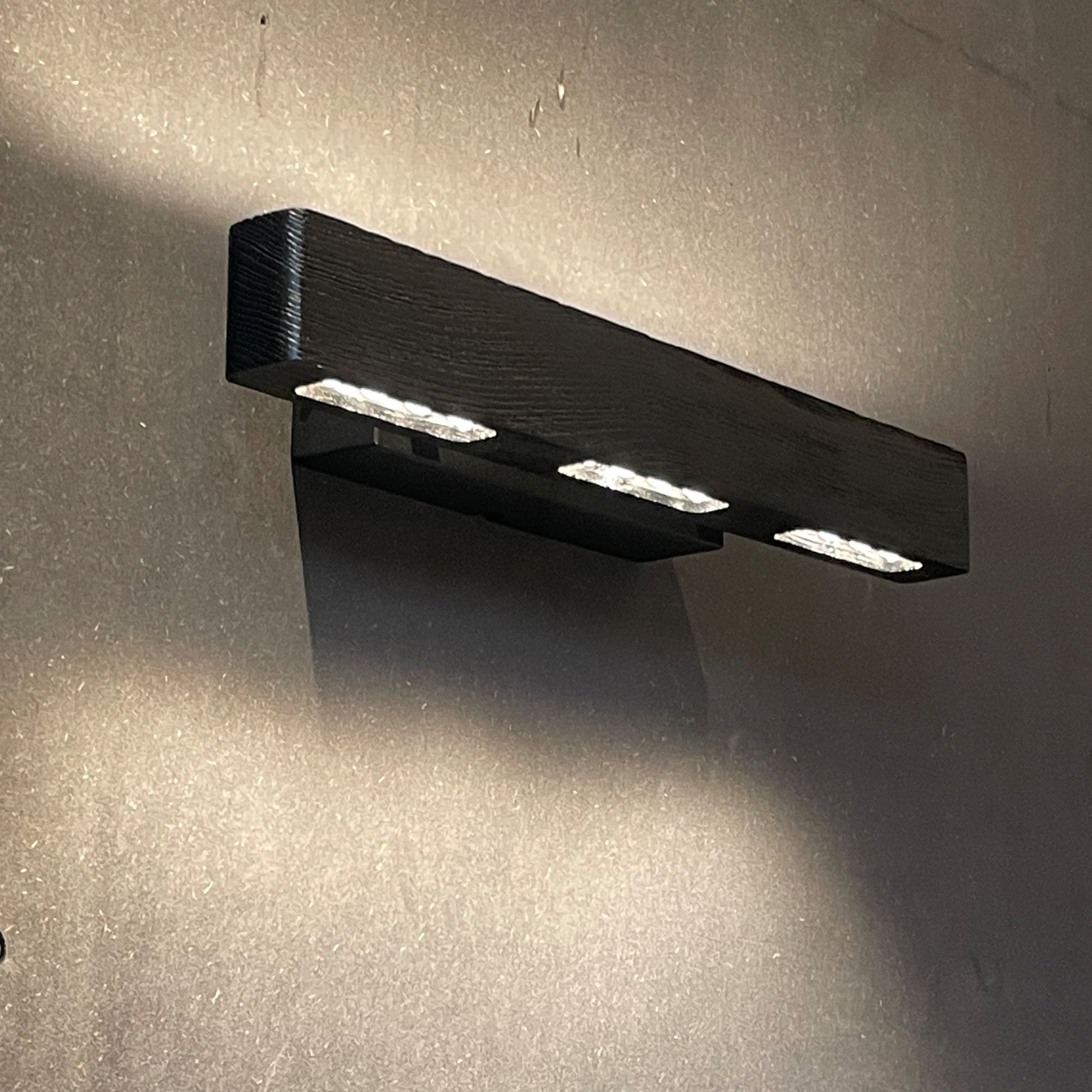 Flott og minimalistisk vegglampe i sort tre med integrert LED som egner seg perfekt i gangen eller trappoppgangen.