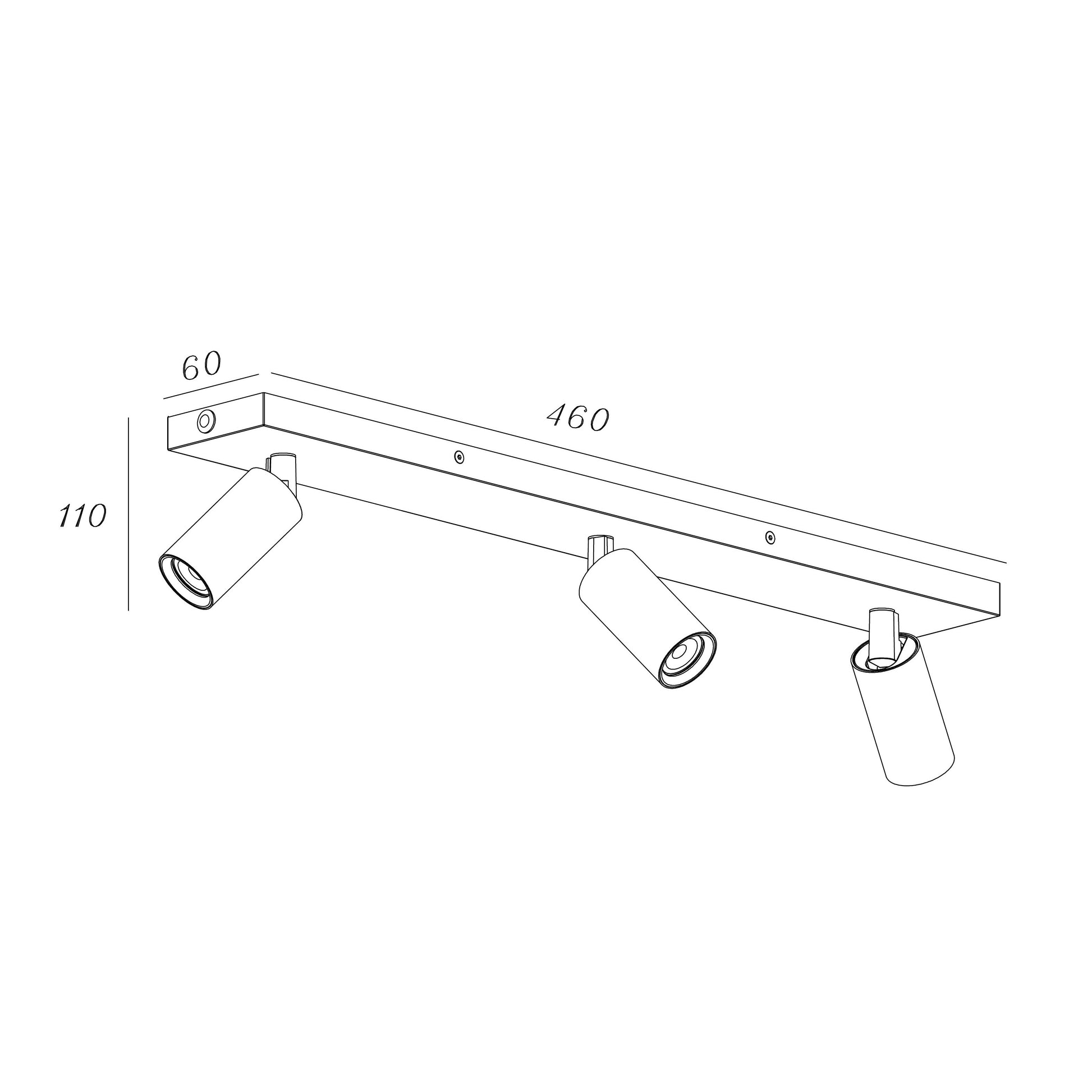 En enkel og delikat taklampe i sort base med tre sylinderformede lampehoder i bronsefarget metall. Lampen gir godt med lys, og lampehodene kan tiltes og roteres slik at du får ekstra lys der du trenger. Lampen fungerer derfor godt i rom der du trenger ekstra lys og spotbelysning. Til lampen trenger du 3stk LED-pærer med GU10-sokkel. Velg en dimbar pære for muligheten til å justere lysstyrken.