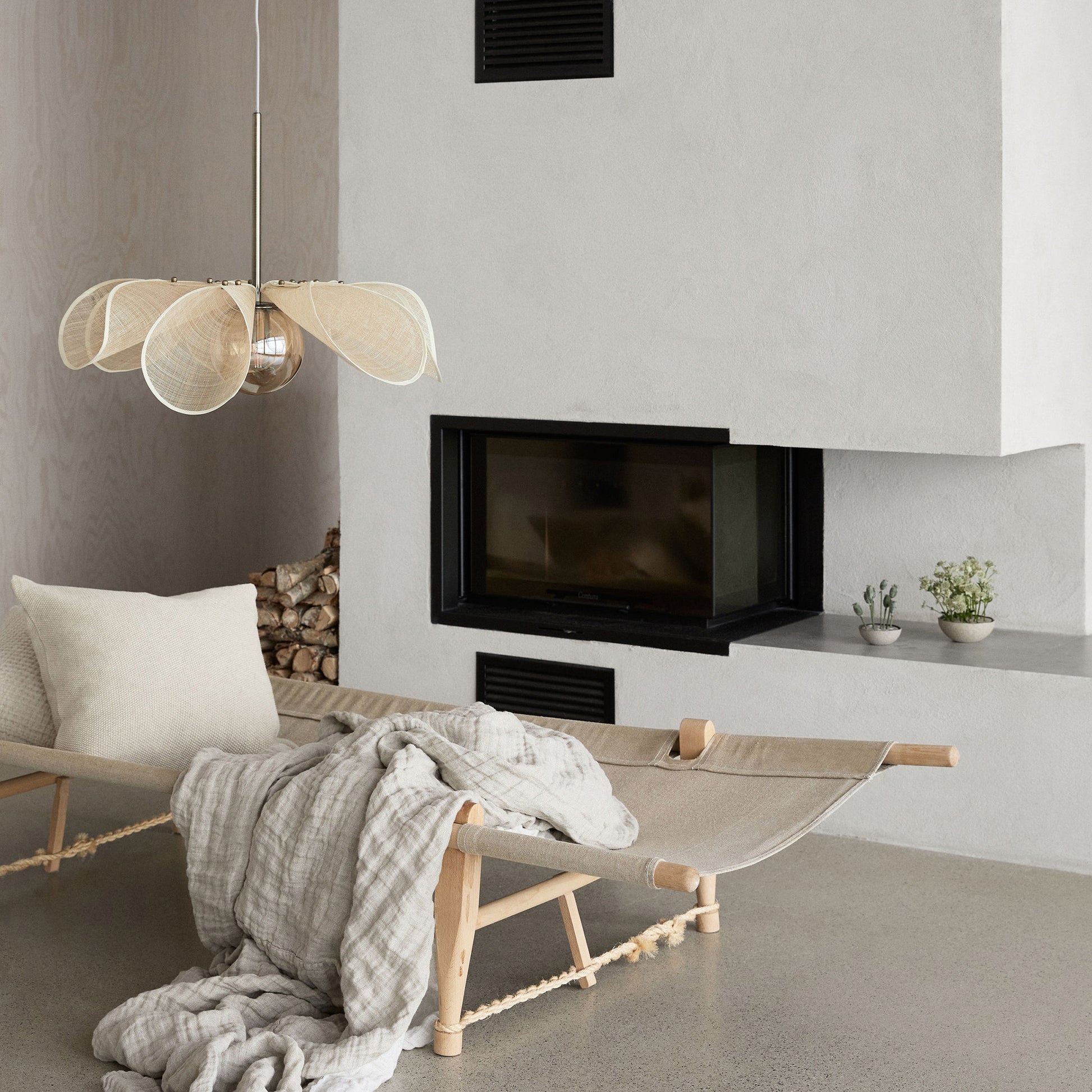 Styrka takpendel er en dekorativ taklampe som setter et fint preg på ethvert rom. Lampen har base i antikkfarget metall, og skjermen er i naturfarget bananfiber. 2m grå tekstilkabel med detaljer i satinert nikkel som kan justeres etter ønsket høyde på lampen. Lyskilde 1xE27 max 40W må kjøpes separat.
