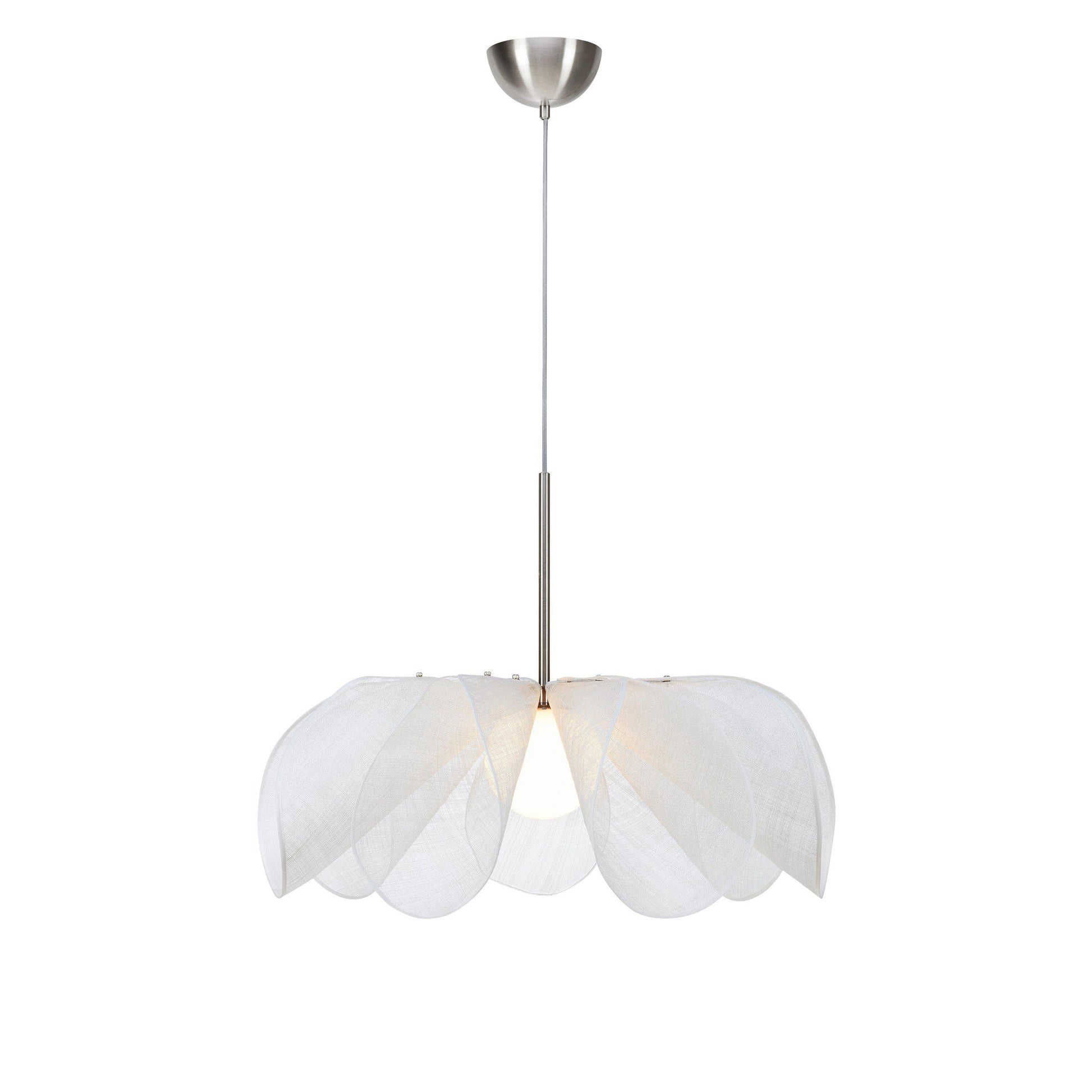 Styrka takpendel er en dekorativ taklampe som setter et fint preg på ethvert rom. Lampen har base i satin nikkel og skjermen er i hvitfarget bananfiber. 2m grå tekstilkabel med detaljer i satin nikkel som kan justeres etter ønsket høyde på lampen. Lyskilde 1xE27 max 40W må kjøpes separat.