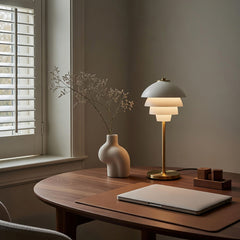 Valencia gulvlampe har et enkelt og elegant design for å passe inn i interiøret i mange år. Skjermen er i opalfarget glass og lampefoten er messingfarget metall. Metallskjermene i ulike størrelser gir et vakkert lys. Diameter på skjermen er 32cm og lampen er 151cm høy. Passer utmerket i stuen, på kontoret eller på soverommet. E27-sokkel.