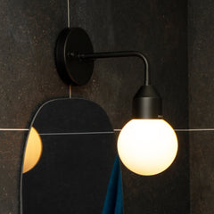 Florens er en stilig vegglampe i matt messing og hvit glasskuppel. Lampen har IP44 og er derfor godkjent for bruk i våtrom. Den kan selvfølgelig også brukes som vanlig vegglampe. Bruk den for eksempel som speilbelysning på badet, enten plassert over eller ved siden av. Lampen avgir et mykt lys med sin matte kuppel, som egner seg godt rundt speil.