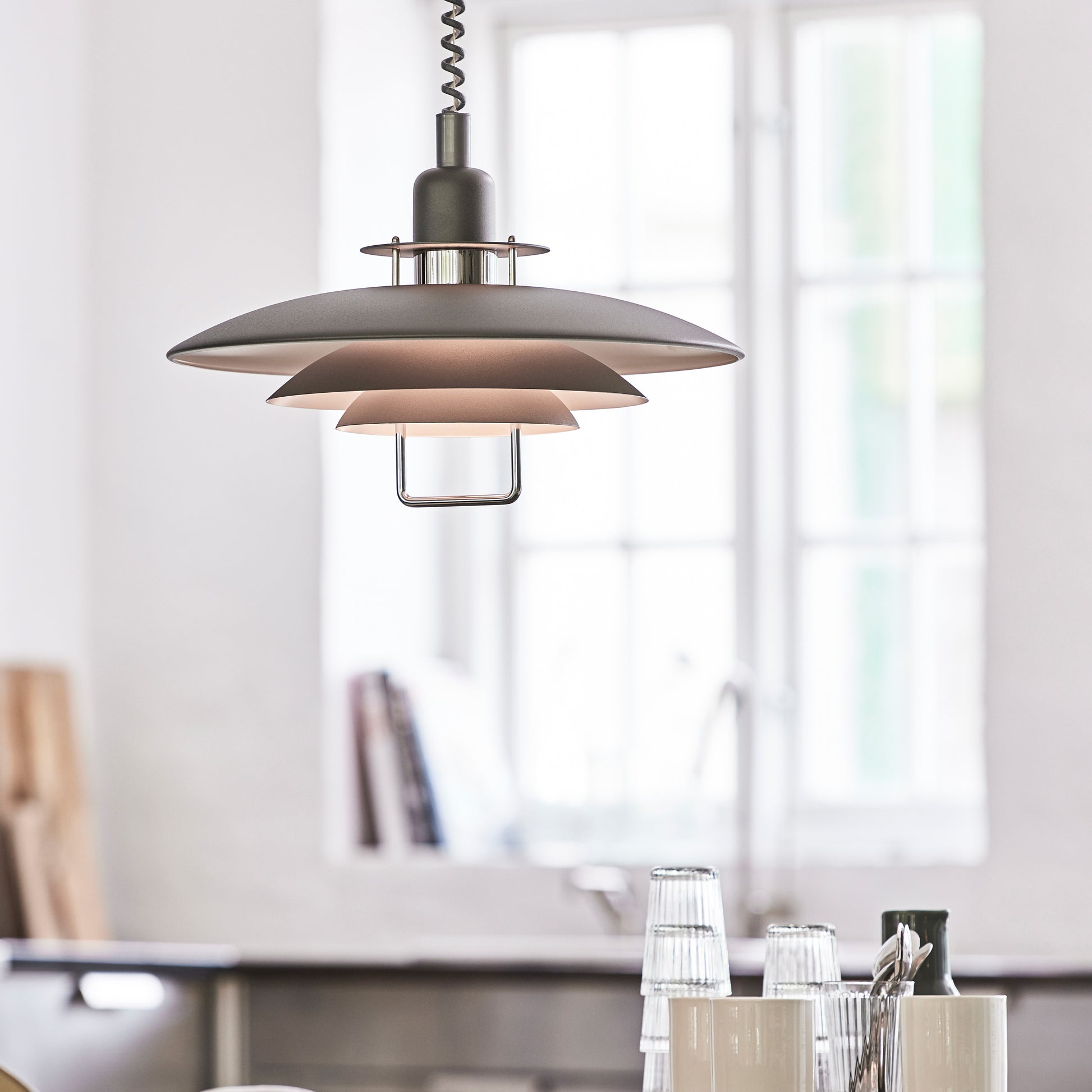 Primus ll er en populær pendel til kjøkken. Designet går tilbake til midten av 80-tallet, men gjennom tidene har fargene variert. Pendelen har et håndtak i metall som gjør det enkelt å justere høyden på pendelen, f.eks. om den henger over et spisebord. Diameter 43cm, høyde 24.9cm og E27 sokkel. Produsert i Varberg, Sverige.