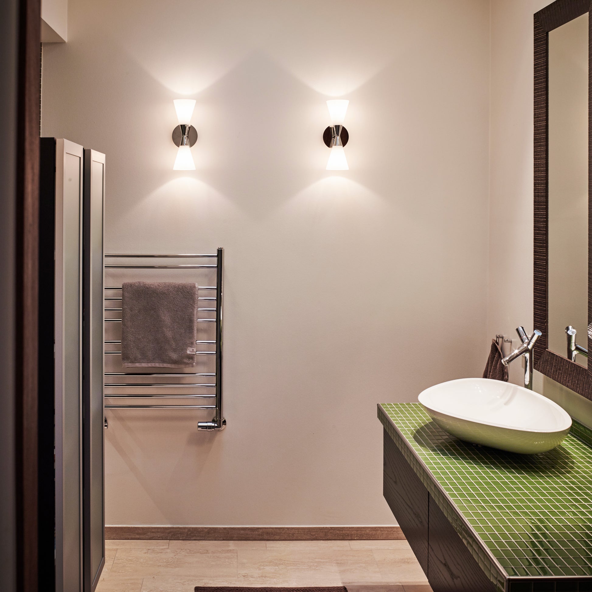 Harlekin Duo er en elegant og stilig vegglampe, som har blitt en klassiker. Det vakre designet gir et mykt lys opp og ned som passer perfekt i f.eks. gangen eller over kjøkkenbenken. Lyskilder ikke inkludert. Du trenger 2stk pærer med E14-sokkel i lampen. Bryter på ledning.