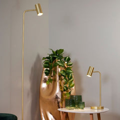 Stilren og nett 2-lys gulvspot i messing. Med sine justerbare lampehoder er dette en perfekt leselampe. Med sin størrelse, høyde 160cm og diameter 23cm, får den plass i selv de minste hjørner. Lampen kommer med 2x5W LED-pærer, GU10 sokkel. Varmt hvitt lys på 3000K.
